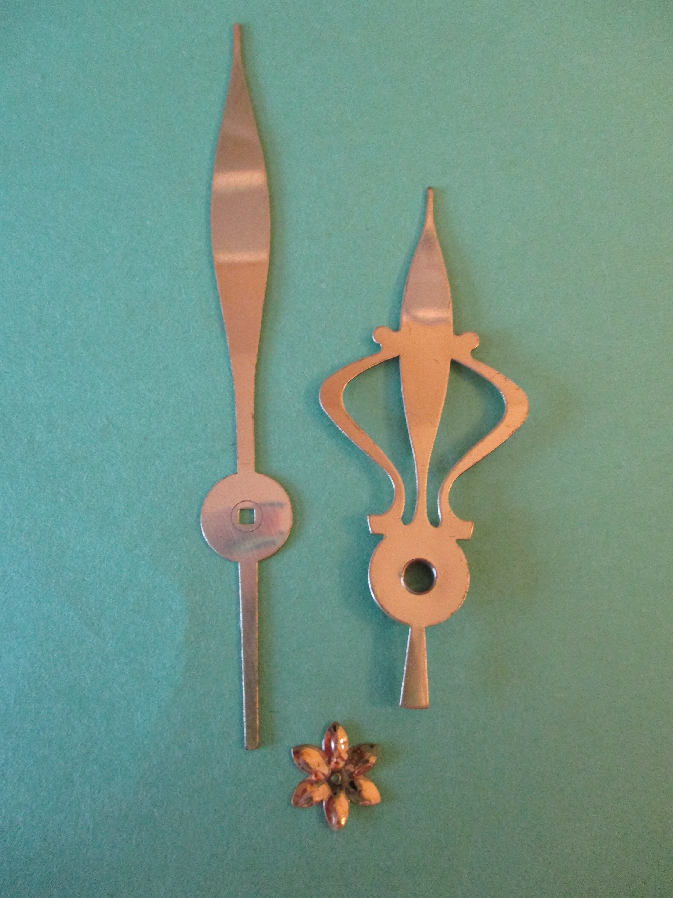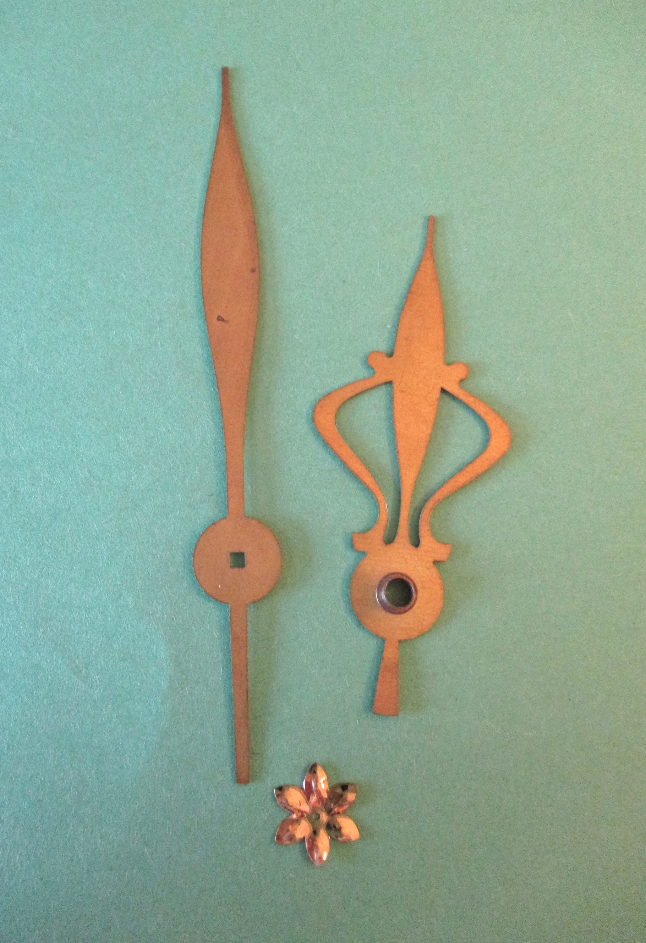 The minute hand measures 3 1/2" from mid hole to tip and 4 3/4" in total length. The square hole measures 1/8" x 1/8". The hour hand measures 2 1/2" from mid hole to tip and 3 1/4" in total length and has an insert that protrudes out the back 1/8". For mechanical clocks, not battery movements.